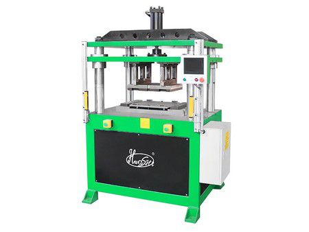 The hydraulic edging machine is used to secure the handle edge strips to the bottom mesh opening.